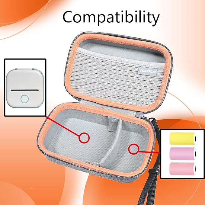 - Easy to Carry -- The compact design of the storage case can be easily placed in a backpack, handbag or luggage. Webbing strap carry handle makes it easy and convenient to take the mini sticker printer anywhere!