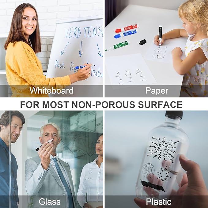 - Suitable for Most Non Porous Surface: These erasable markers are suitable for most non porous surface, are perfect gift choices - as a Birthday gift, Halloween gift, Christmas gift, back to school gift for family and friends. Great Whiteboard markers for students, teacher, business staff.