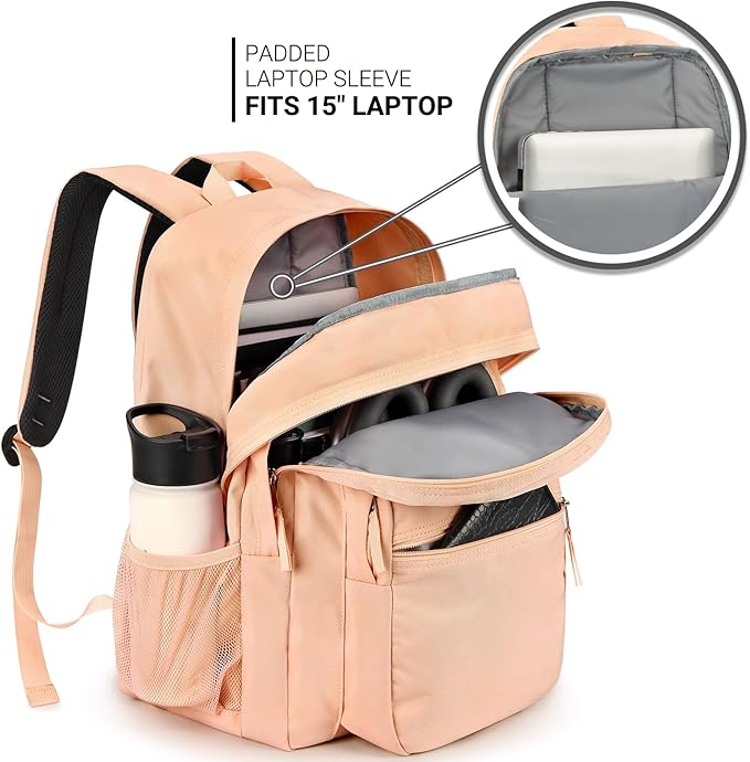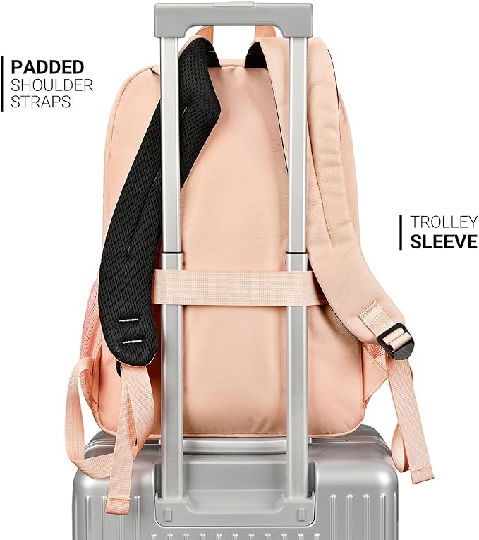 ZORFIN 26L Backpack for School, College, and Travel: Water Resistant Bookbag with 8 Compartments - Misty Rose