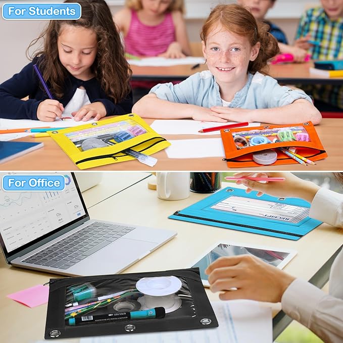 - Multipurpose Usage: Our pencil zipper pouches are functional and durable supplies and organizartion in daily use, Perfect for storing pencils, pens, stationery, business cards, checks, receipts, flash cards, charging cables, tissues, cosmetics and other little necessities. This 3 ring pencil pouch is ideal for students, professionals, and everyday use in college, school, office, or at home.