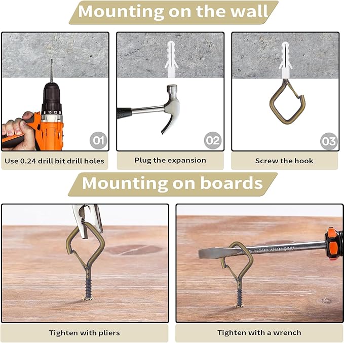 - 🔧【Easy Screw-In Installation】 Simply twist into wood, ceilings, beams, fences, or walls for instant hanging support. 2.36-inch length provides a firm hold.