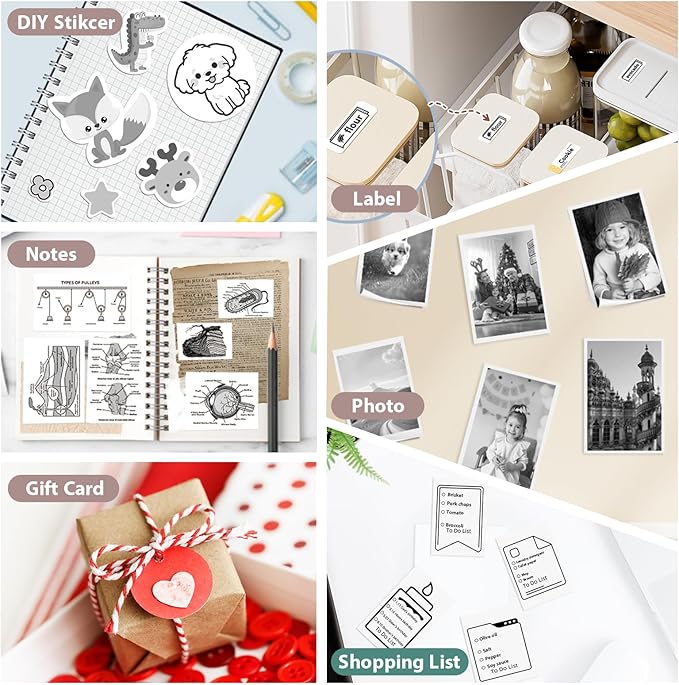 - Multifunctional Mini Printer: With this portable sticker maker, you can not only design stickers, DIY crafts, or photo prints but also can print QR codes, calendars, or habit trackers straight from your phone. This printer is great for little projects, scrapbooking, journaling, labeling etc