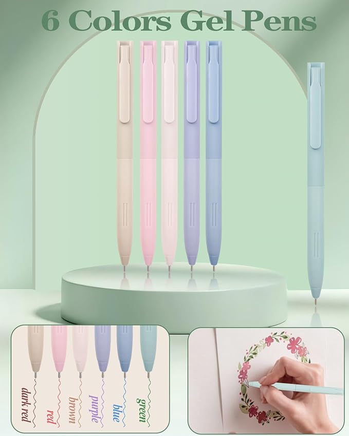 - 【11 PIECES RETRACTABLE GEL PENS】 There are 5 black neutral pens and 6 multi-color neutral pens to meet your daily writing needs. These pens are made of high quality materials that are resistant to drops and abrasions and are sturdy and comfortable to hold for long periods of time. The retractable design makes it easy to use and maneuver with one hand. The weighted spring delivers a smooth writing experience with no ink breakage or skipping, whether you're taking quick notes or writing neatly, and the rounded, smooth nib won't snag paper, ensuring clean, neat writing. Extra 5 black refills and 6 multi-color refills are provided for long-term use