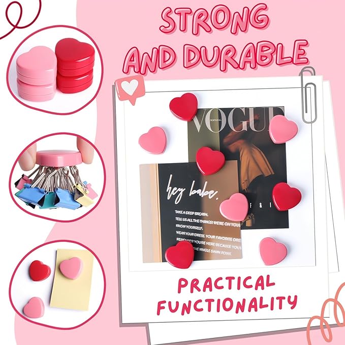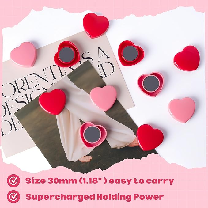 - ❤️【Adorable Heart-Shaped Design】Upgrade your space with charming heart-shaped strong magnets! These small magnets add instant personality to metal surfaces and add a touch of whimsy to functional spaces. Magnets refrigerator are perfect for home kitchens craving personality, college dorm lockers needing cheer, or modern offices seeking stylish organization. The 1.18" diameter size of mini magnets ensures visibility without overwhelming your refrigerator art gallery or whiteboard presentations