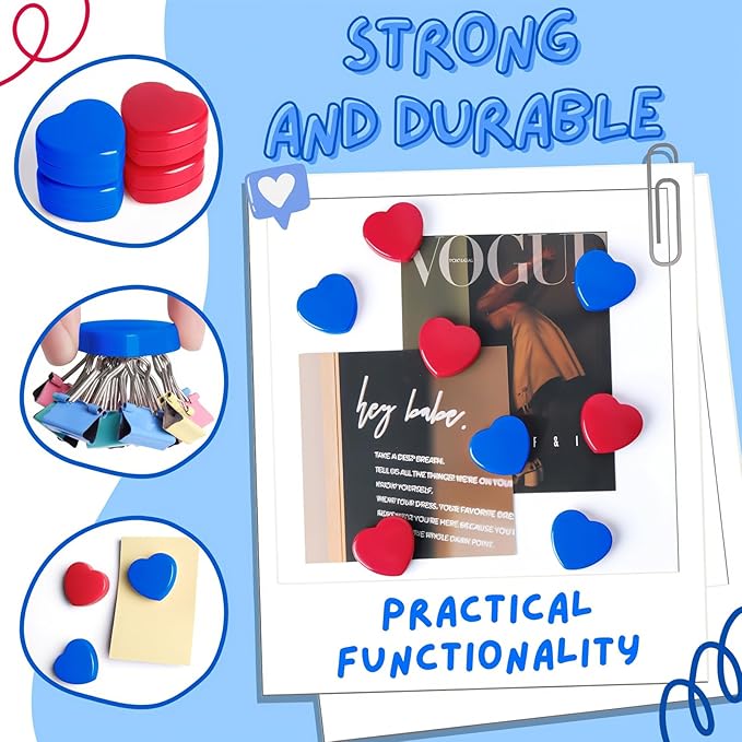 - ❤️【Adorable Heart-Shaped Design】Upgrade your space with charming heart-shaped strong magnets! These small magnets add instant personality to metal surfaces and add a touch of whimsy to functional spaces. Magnets refrigerator are perfect for home kitchens craving personality, college dorm lockers needing cheer, or modern offices seeking stylish organization. The 1.18" diameter size of mini magnets ensures visibility without overwhelming your refrigerator art gallery or whiteboard presentations