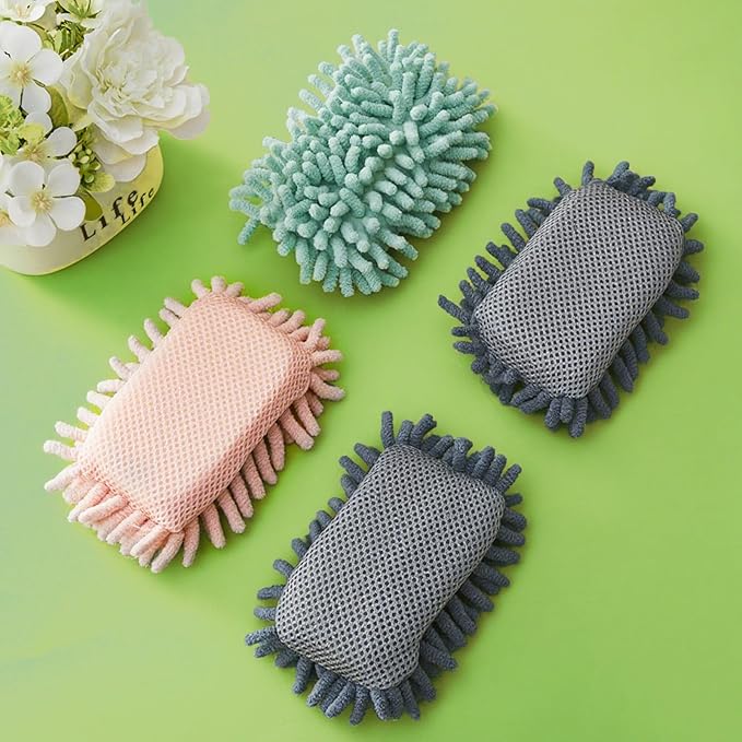 Zonon 4 Pieces Dry Erase Eraser Microfiber Shag Washable Whiteboard Eraser for Markers, Chalk, Classroom, Home and Office(Pink, Green, Gray)
