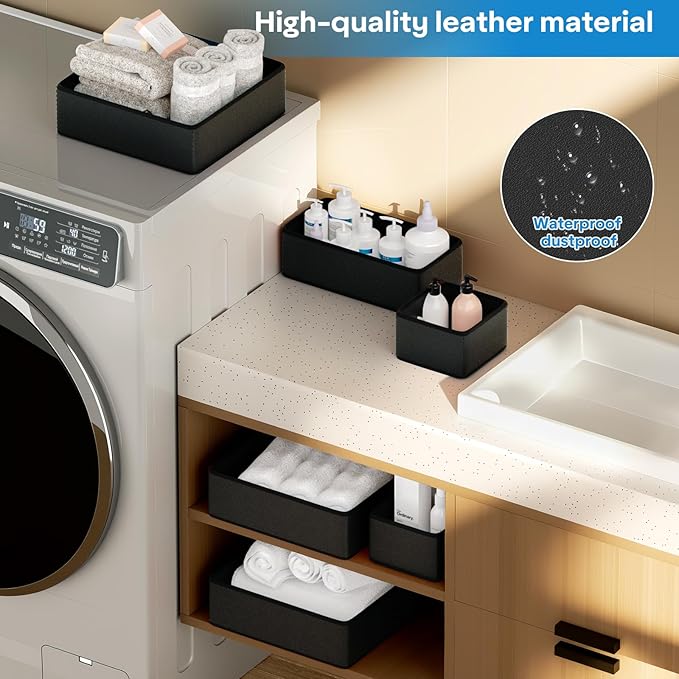 Vegan Leather Drawer Organizers,8 Pack Makeup Storage boxes,Vanity Drawer Luxury upgrade,Bedroom fabric Drawers replacement,bathroom organization and storage Optimal solution