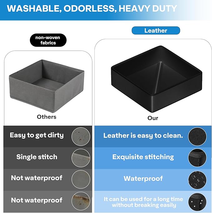 - 【Luxurious Decorate】 Decorate your space with our vegan leather drawer organizers. This 12 piece set features three versatile sizes (3 Large: 11"x11"x4.5", 3 Medium: 11"x5.5"x4.5", 6 Small: 5.5"x5.5"x4.5") ,You can place them anywhere in your home or office.Don't worry about the dust on the outside,Just wipe them with a wet tissue and they'll be as clean as new.