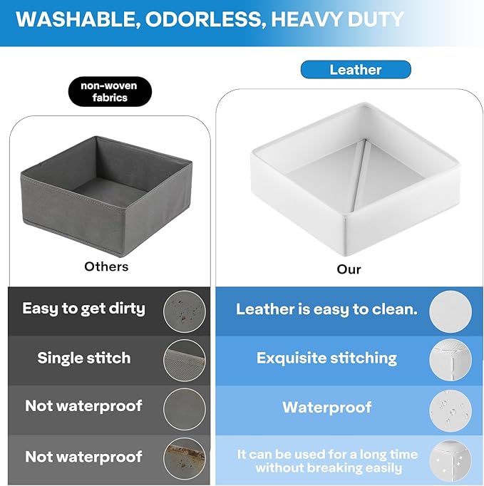 Vegan Leather Drawer Organizers,12 Pack Makeup Storage boxes,Vanity Drawer Luxury upgrade,Bedroom fabric Drawers replacement,bathroom organization and storage Optimal solution
