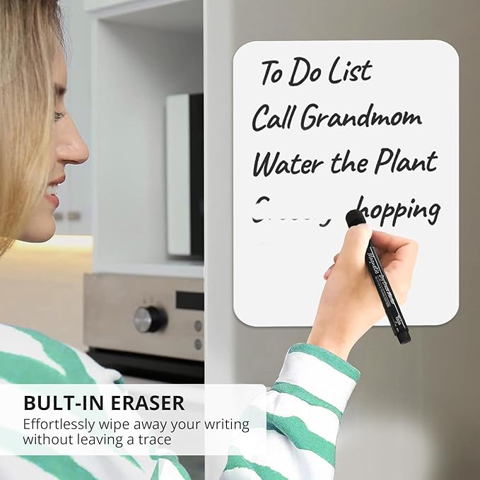 - Built-In Erasers—Mess-free writing at your fingertips! Each marker features a built-in eraser, letting you make quick corrections without a fuss. Wipe away mistakes instantly, leaving no trace behind.