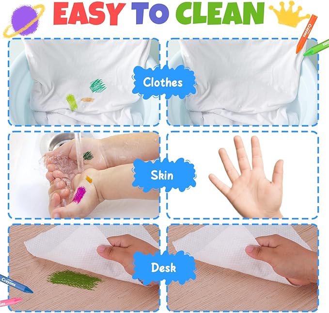 - 【Washable Crayons】These washable crayons for toddlers 1-3 are easy to clean. You can easily clean the desktop, skin, and clothes with soap. While allowing children to enjoy the pleasure of toddler coloring, parents can also gain inner peace.
