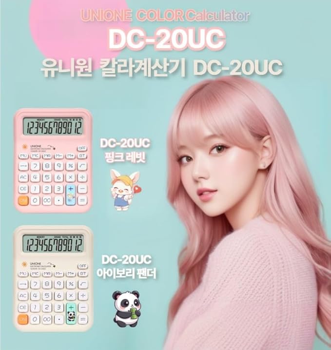 UNIONE Panda Calculator with a Bright LCD, Dual Power Handheld Desktop. Color. Business, Office, High School… (Beige)