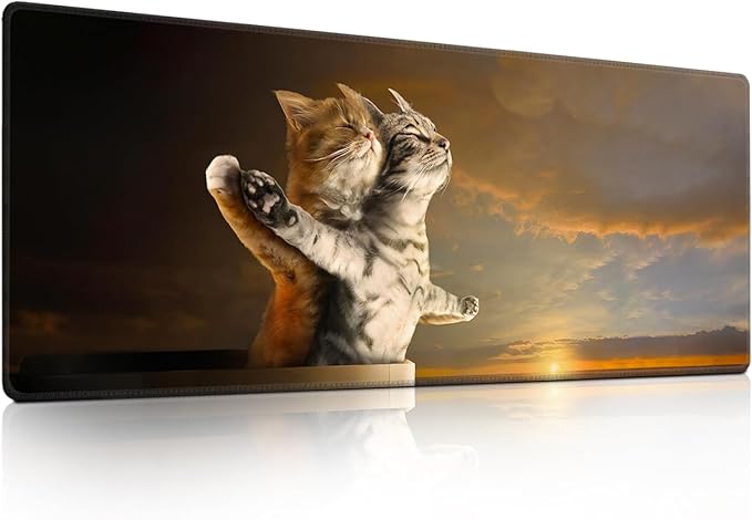 Titanic Funny Cat Mouse Pad with Sunset Scene - Large Non-Slip Desk Mat for Office, PC & Laptop - 31.5"x11.8" x 3mm