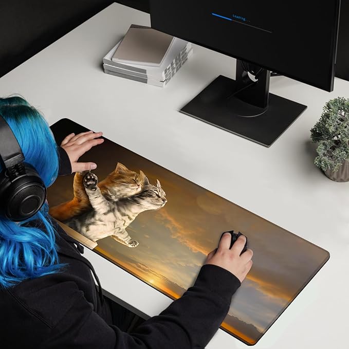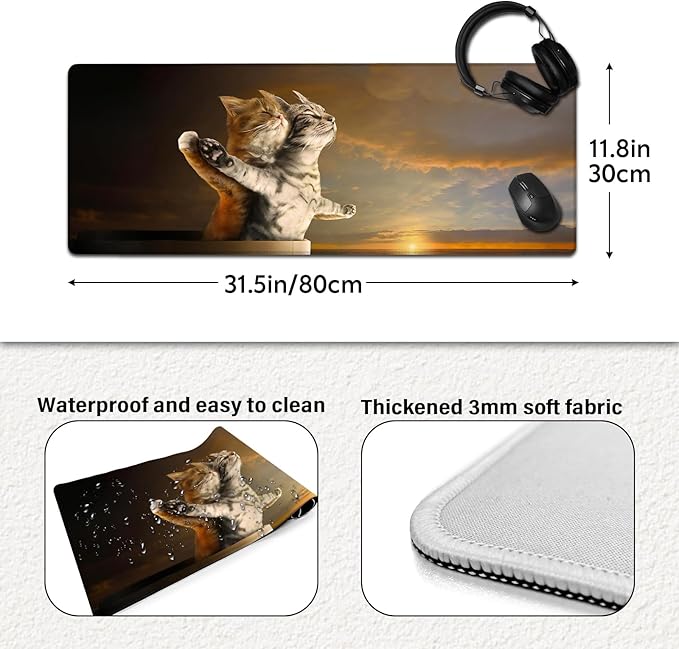 - Large Size:Funny Cat mouse pad measures 31.5 x 11.8 inches, providing ample space for your mouse, gaming keyboard, and other desk items while protecting your desk from scratches and stains.