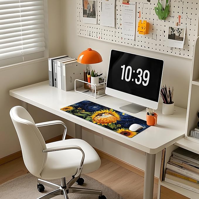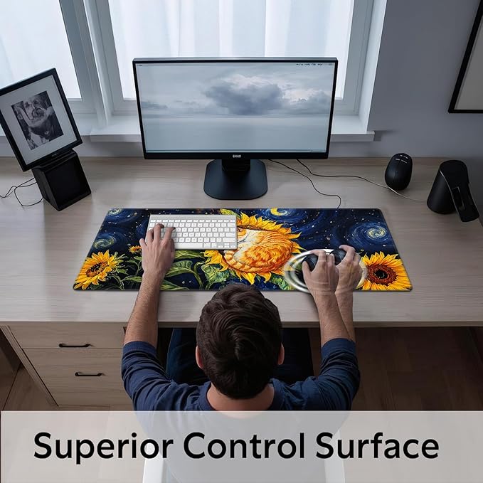 - Large Size: Sunflower Cat mouse pad measures 31.5 x 11.8 inches, providing ample space for your mouse, gaming keyboard, and other desk items while protecting your desk from scratches and stains.