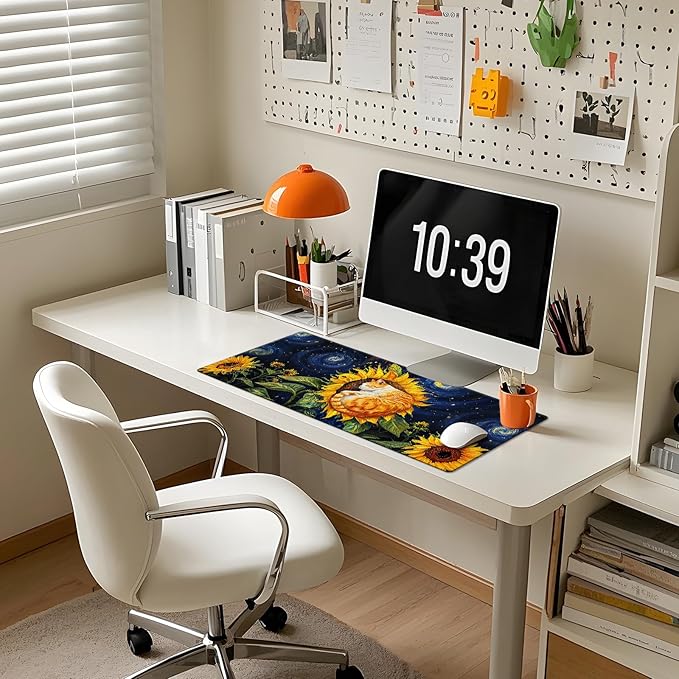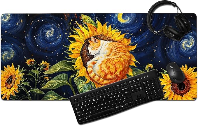 - Large Size: Sunflower Cat mouse pad measures 35.5 x 15.7 inches, providing ample space for your mouse, gaming keyboard, and other desk items while protecting your desk from scratches and stains.