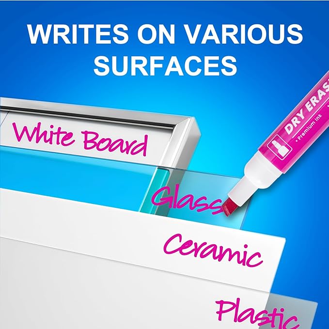 - Works on Multiple Surfaces : Compatible with whiteboards, windows, car mirrors, and more. These dry erase markers can also be used as chalk markers or wet erase markers, offering exceptional versatility for various tasks.