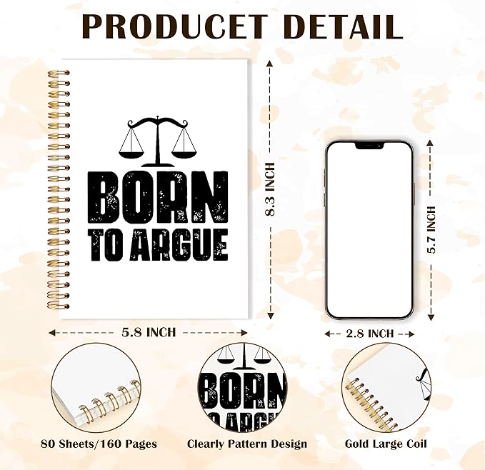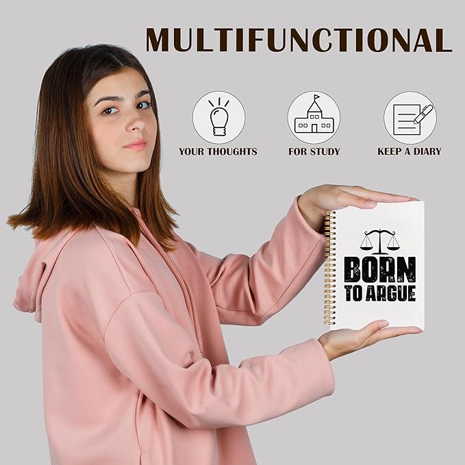 Lawyer Gifts Spiral Notebooks, Attorney Gifts Journals for Writing, Gift for Lawyers Attorneys Journal, Born to Argue Funny Lawyer Notebook for Note Taking, 5.5x8.3 Inch