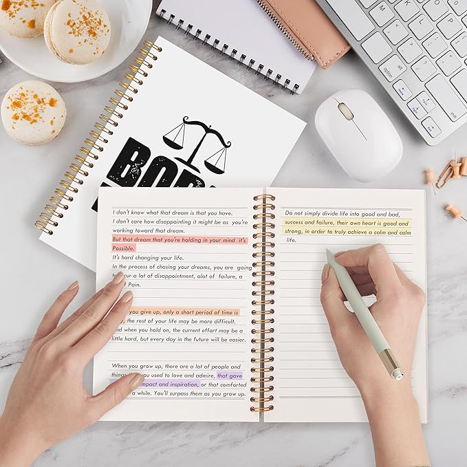 - Size and Construction: Measures approximately 5.5 x 8.3 inches. Comes with a hardcover and spiral binding, making it easy to open flat and write comfortably.