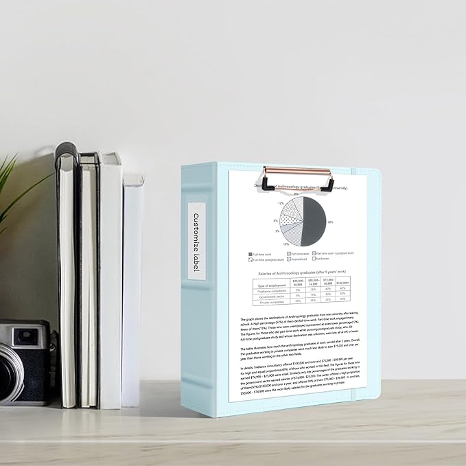 - 【Premium Design】The easy-to-grip clip securely holds 80–100 sheets, while elastic closure straps protect contents during transit. An elastic pen loop secures your writing tools, and a detachable spine label delivers quick binder access.