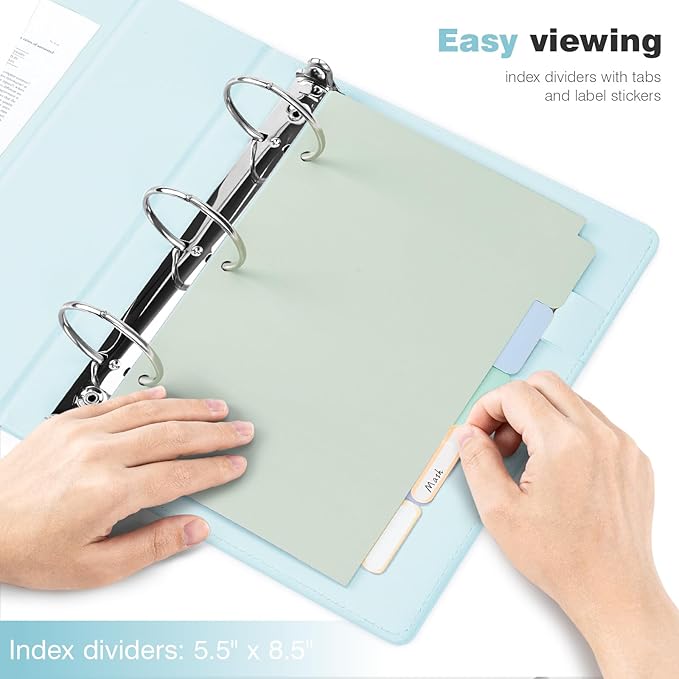 - 【Mini Leather Binders】Sized at 8.5 × 9.5 × 3.2 inches, three ring binder is perfect for work or school. Clipboard binders with dividers fit letter-sized 5.5" x 8.5" paper and are suitable for most common paper notes.