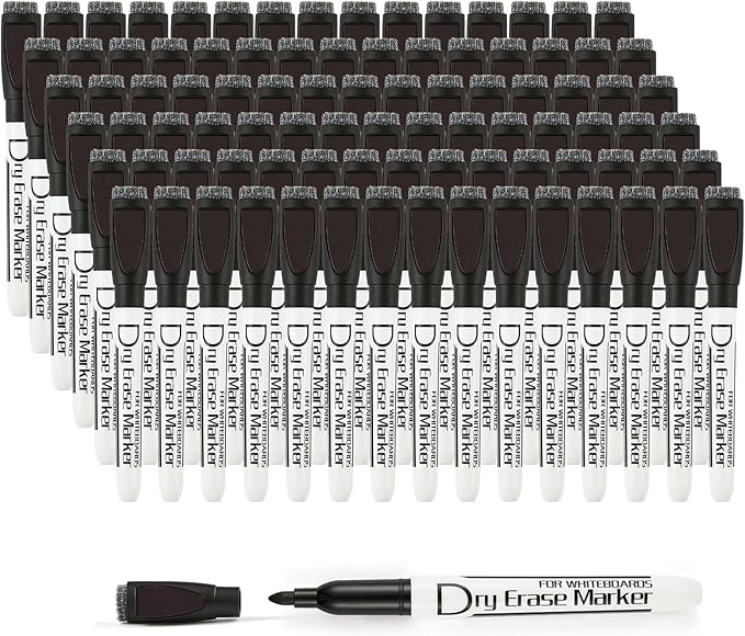 Volcanics Magnetic Dry Erase Markers With Eraser Low Odor Fine Tip Whiteboard Markers White Board Pens for Office Home and School, Pack of 90, Black