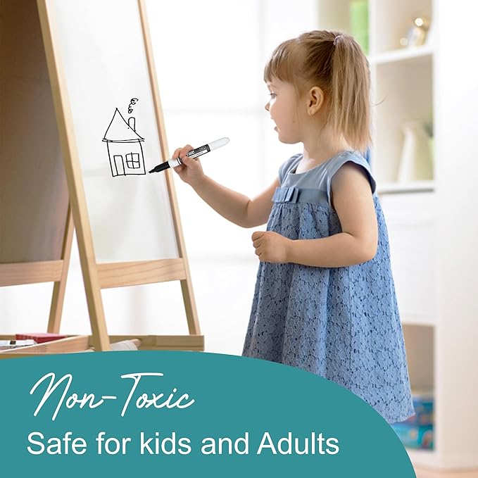 - Erasable markers – our dry erase pens are 100% nontoxic and safe to use with kids or adults, they are ideal for classroom, office, and home use.