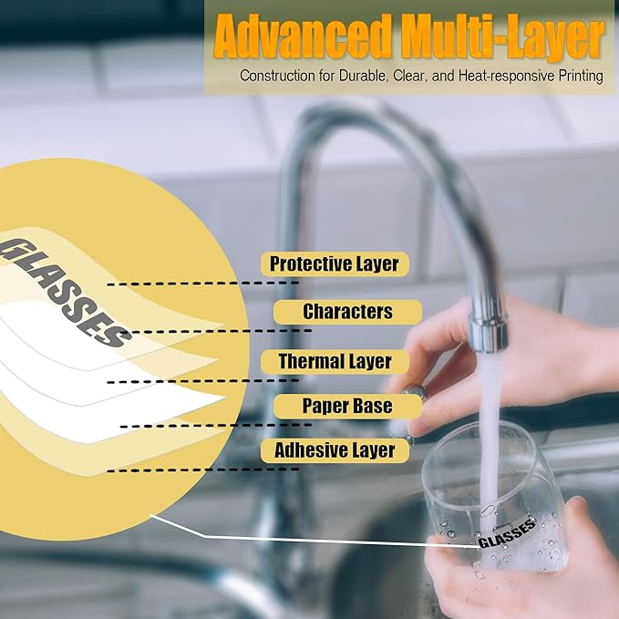 - DURABLE, WATERPROOF & TEAR-RESISTANT: Designed to last, these labels withstand water, oil, and daily wear without peeling or fading. Their ultra-strong adhesive sticks securely to paper, metal, glass, and more—perfect for kitchens, offices, and even outdoor use.