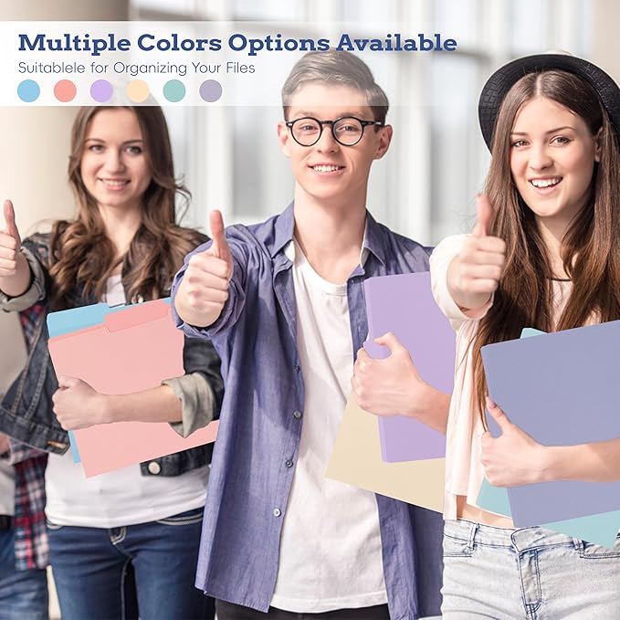 100 Packs File Folders Letter Size, 8.5 x 11 Colored File Folders 1/3 Cut Tab for Easy Labeling, for Home, Office, School Filing