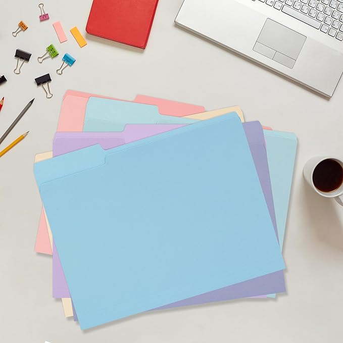 100 Packs File Folders Letter Size, 8.5 x 11 Colored File Folders 1/3 Cut Tab for Easy Labeling, for Home, Office, School Filing