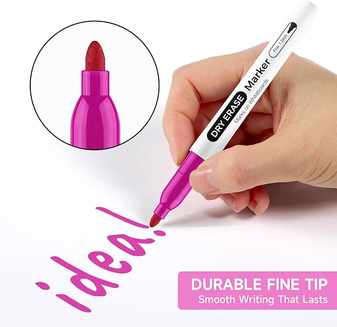 - Multi-Surface Compatibility: Our fine tip dry erase markers work perfectly on whiteboards, glass boards, and plastic boards, making them ideal for school, offices, home message boards, modern office and creative spaces, as well as reusable writing surfaces and DIY projects.