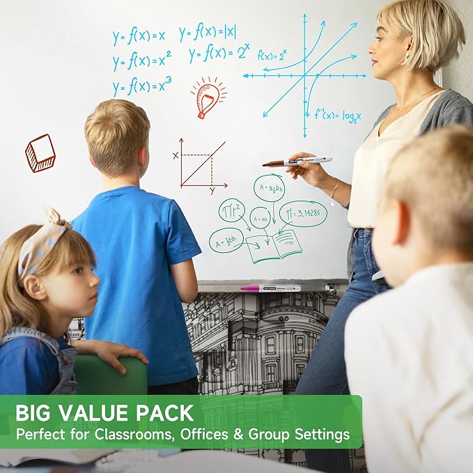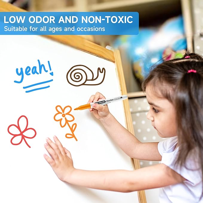 - Safe, Non-Toxic & Low-Odor: These whiteboard markers meet ASTM F963-23 standards and feature low-odor, non-toxic ink, making them safe and comfortable to use in any environment.