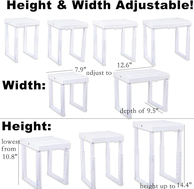 - 【HEIGHT & WIDTH ADJUSTABLE LOCKER SHELF 】– This adjustable locker organizer shelf expands from 7.9" to 12.6" wide and 10.8" to 14.4" high, with a depth of 9.5". It’s designed to fit most standard school, gym, and work lockers, making it the perfect locker shelf for organizing books, supplies, or personal items.