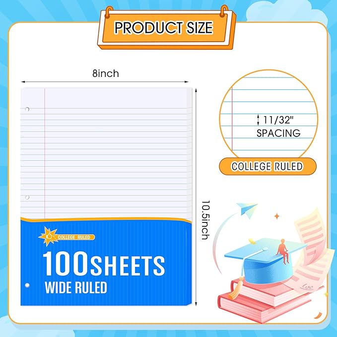 - Practical Value: these wide ruled paper bulk are compatible with most standard 3 ring binders and notebooks, wide ruled lined filler paper designed for practicality, it seamlessly fits into your binder, offering easy organization and making it simple to add, remove, or rearrange pages as needed