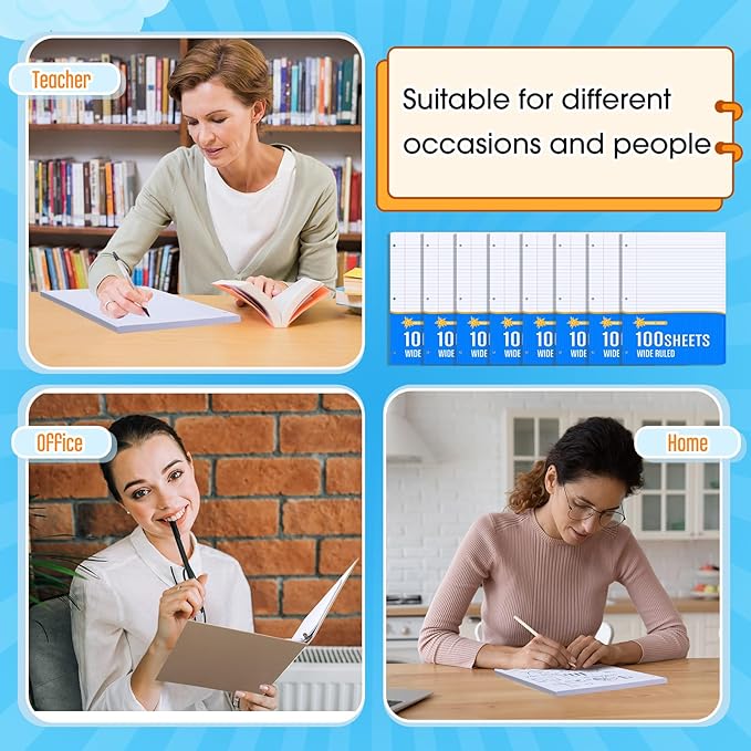 - Quality Material: our wide ruled notebook paper bulk pack is designed to provide you with a consistent and smooth writing experience, the paper is made from quality materials that are resistant to bleeding and smudging, ensuring that your writing stays clear and legible