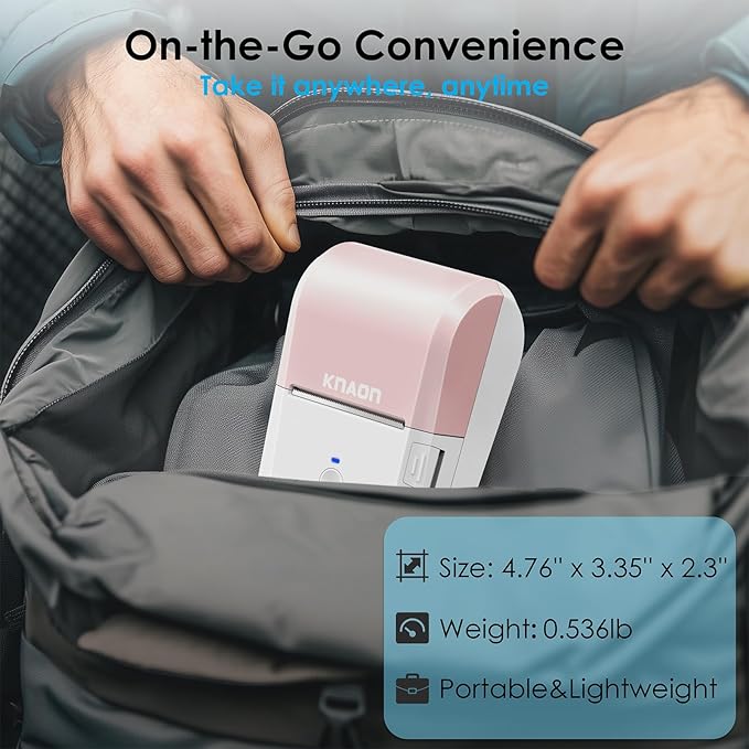- Compact & Portable: The KNAON Portable Thermal Label Printer is designed for on-the-go use, featuring a compact size of 4.76 x 3.35 x 2.31 inches—easy to carry, easy to store. Powered by a reliable 1200mAh battery, it supports fast and convenient charging via a Type-C cable. Each package also includes a 50mm x 30mm roll of thermal label paper to get you started right away.
