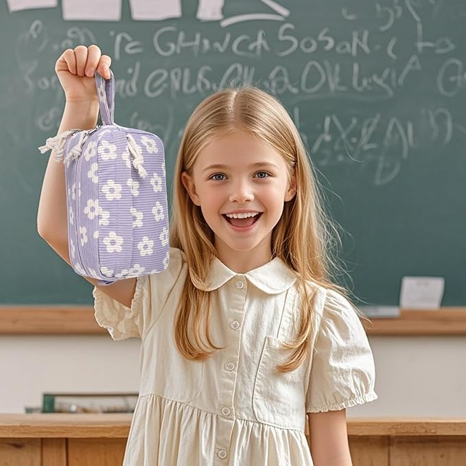 Bluboon Big Capacity Pencil Case Pencil Pouch Pen Case School Supplies Cute Pencil Box Pencil Bag for Teen Girls Boys Women Man (Beige Flower Purple)