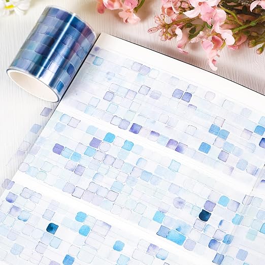 - Charming Mosaic Design: This scrapbooking PET tape features a soft, ocean-inspired mosaic pattern with shades of blue and lavender, adding an elegant touch to your creative projects