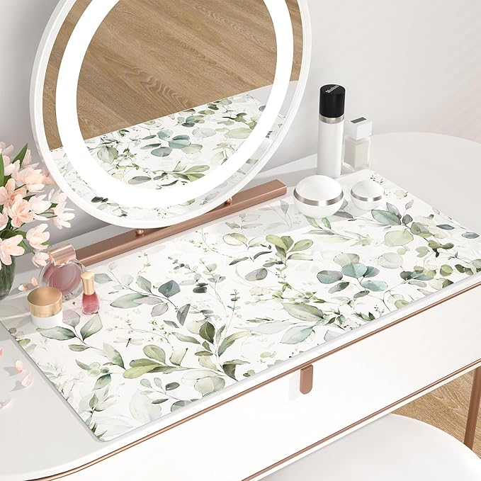 QIYI Large Mouse Pad, Extended Desk Mat for Desktop, PU Leather Waterproof Gaming Mousepad, Computer Desk Accessories Protector Writing Pads for School Office Home 31.5" x 15.7" - Soft Green Foliage