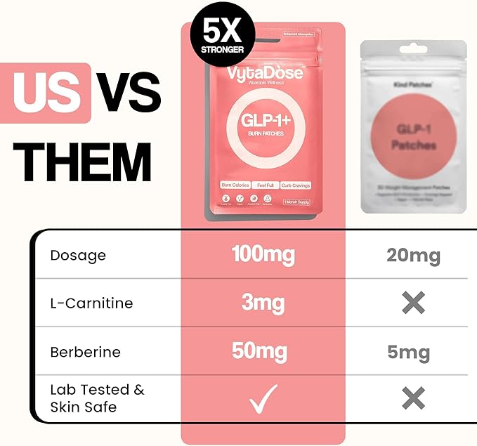 - 5x STRENGTH FORMULA: Formulated 5x Stronger. Vytadose GLP 1 Patches May Assist With Cravings & Hunger Levels, Alongside Healthy Lifestyle