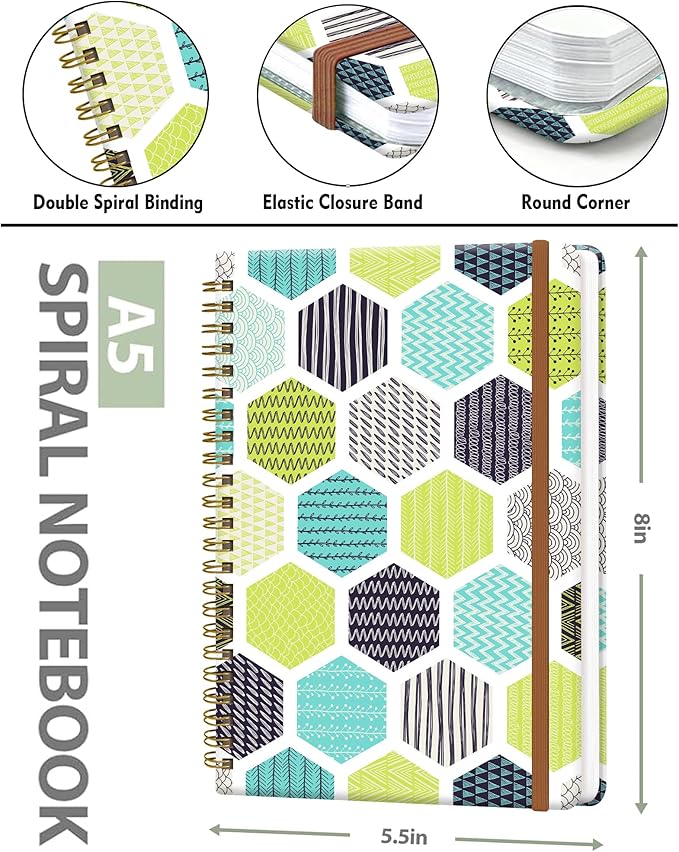 - PREMIUM A5 SPIRAL NOTEBOOK – This spiral-bound notebook includes 120 high-quality, college-ruled pages designed to prevent ink bleed-through, providing a smooth writing experience for all your note-taking and journaling needs.