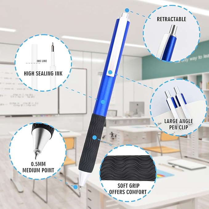 - 4.BLACK INK AND DURABLE CONSTRUCTION: Fade-resistant water-based ink meets ISO durability standards. The stainless steel nib and shatterproof ABS barrel withstands drops, making these gel pens ideal for backpacks, white coats, or factories.