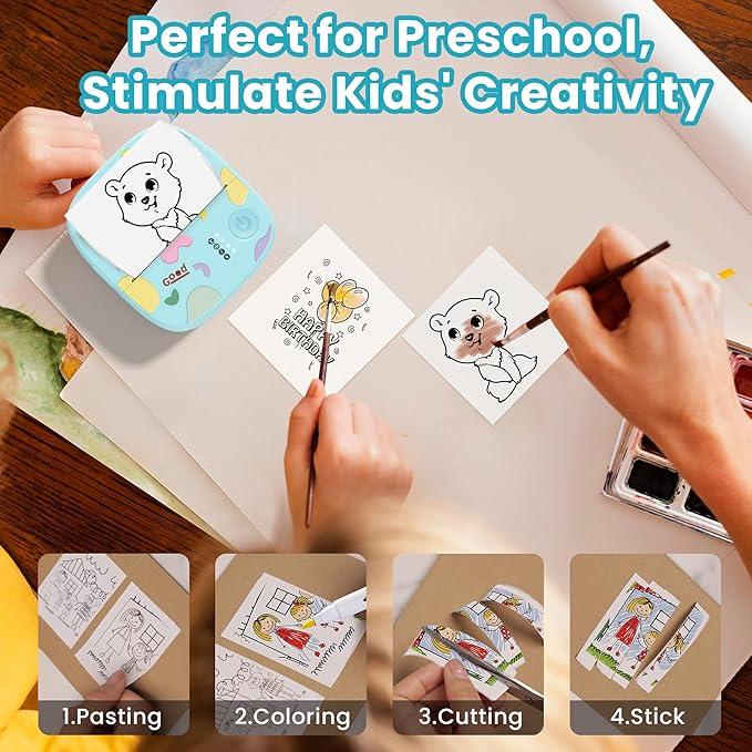 - 【No Ink, No Mess – Just Clear Prints】Powered by advanced thermal printing technology, this mini printer delivers crisp, high-resolution (203 DPI) black-and-white prints — no ink, no hassle, and no preheating needed. Prints smoothly on both self-adhesive sticker paper and regular thermal paper, including colorful rolls! Comes preloaded with 1 roll of white sticker paper, plus 3 bonus rolls for extra fun