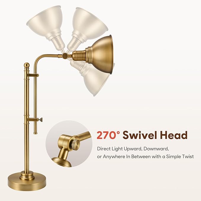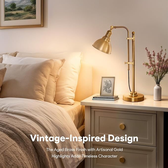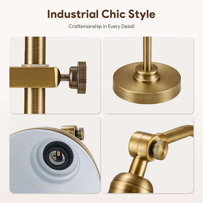 VONLUCE Rustic Desk Lamp Gold Adjustable, Industrial Style Metal Task Lamps 25"-29", Vintage Work Light, Farmhouse Reading Lamp in Brushed Gold Finish, ETL Certificate