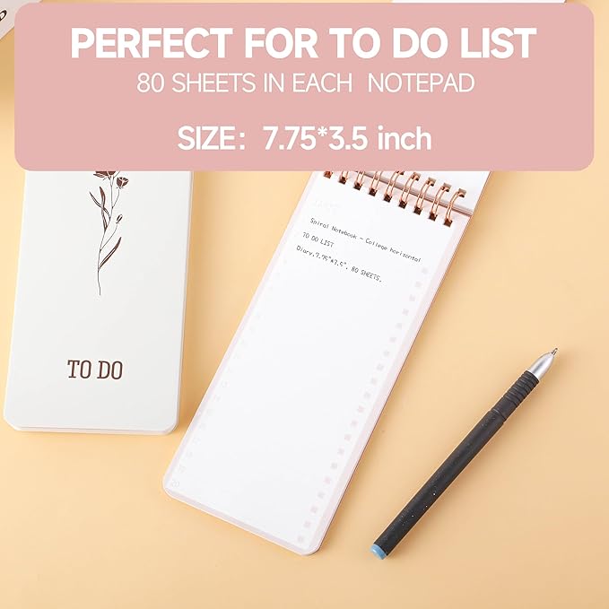 - 🌀 Portable Spiral Design – Durable coil binding allows 360° lay-flat use. Ultra-compact 7.7"x3.5" size fits in bag, or pockets for on-the-go productivity.