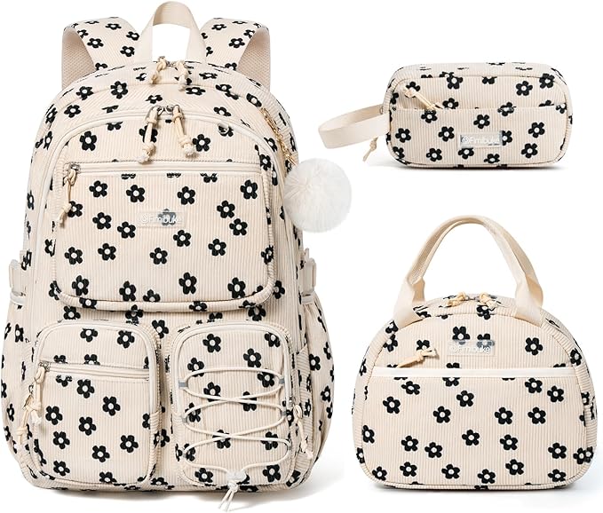 - 3PCS Girls Backpack Set: Tired of buying school essentials separately? This 3-in-1 backpack for school set includes a corduroy backpack, lunch bag, and pencil case. This great value-for-money school backpack for girls will meet all your kids needs to go back to school! Adorned with playful color and stylish patterns, this girls backpack and lunch box set adds a touch of sweetness to your girl's school day ensemble. Perfect for elementary, middle, high school, travel or teen girls