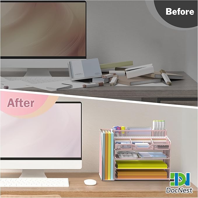 - Easy Assembly and Maintenance: Simplify your office organization with the DocNest tray organizer, which is easy to assemble and maintain. Its modular design allows for quick setup, and the mesh compartments are easy to clean, ensuring that your workspace remains tidy and organized with minimal effort. This desktop organizer is a breeze to maintain, saving you time and effort in keeping your office space pristine