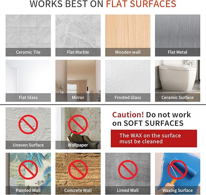 - EASY INSTALLATION: No tools required - simply peel off the backing and press firmly against any clean, smooth surface