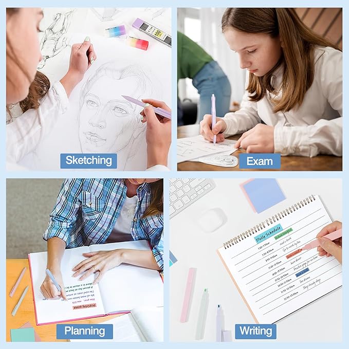 - Versatile Writing Experience: Gel pens with multiple ink colors meet diverse writing needs, featuring quick-drying ink for clear and smudge-free writing, perfect for journaling and note-taking. With gentle eye-friendly colors and chisel tips, highlighters are suitable for marking large areas of important text. Mechanical pencils come in 0.5mm and 0.7mm options for detailed drawing or writing.
