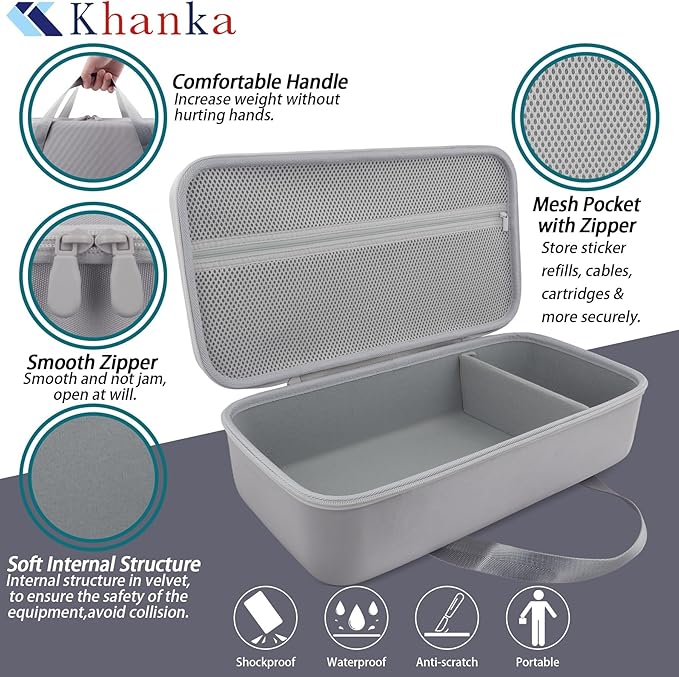khanka Storage Case for Liene PixCut S1 Printer - Fits Liene PixCut S1 Photo Sticker Printer Die Cutting Machine & Cutting Blade/Ink Cartridge, All - in - One Grey Protector